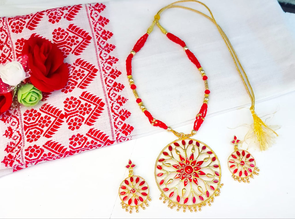 Celebrate heritage and elegance with this beautifully handcrafted Assamese Minakari Junbiri Set. Designed in a fresh, contemporary style while preserving traditional Assamese artistry, this jewelry set features exquisite minakari (enamel work) detailing. Lightweight yet striking, it is perfect for weddings, festive occasions, or as a unique cultural statement. A must-have for lovers of ethnic Indian jewelry and Assamese craftsmanship.